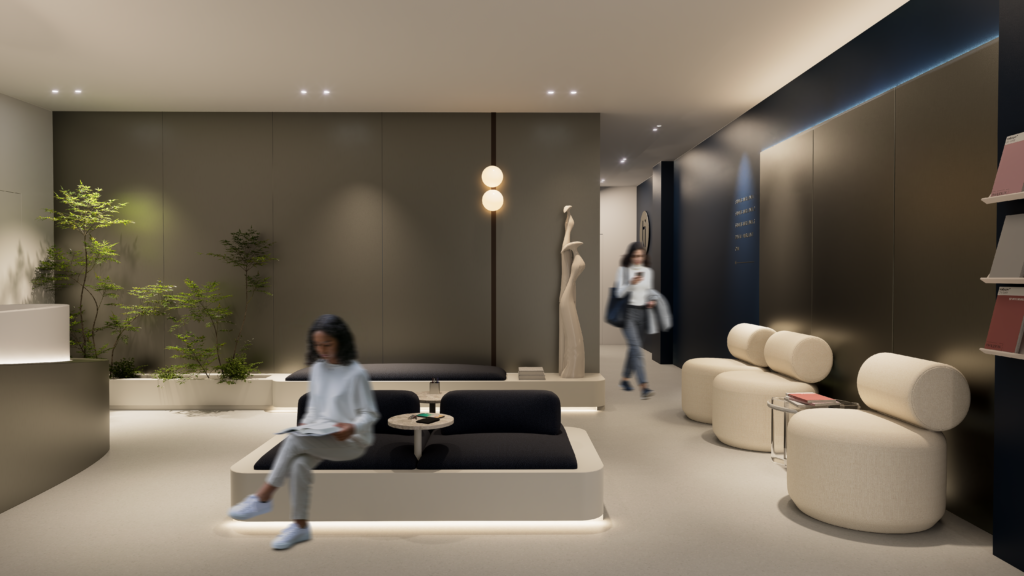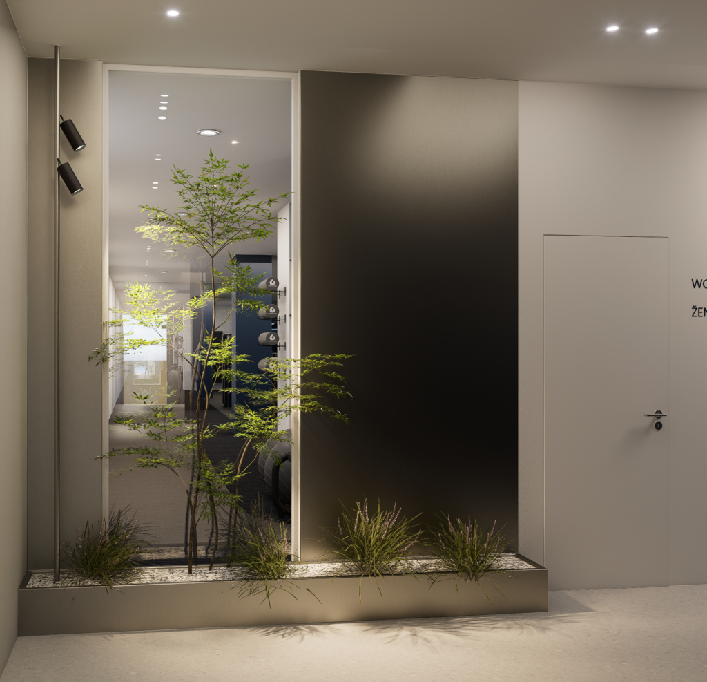 Pomemben del zasnove je bila tudi organizacija. Prostor je razdeljen logično in pregledno, tako da se uporabnik skozi različne faze obravnave premika intuitivno — od recepcije in čakalnega prostora do terapevtskih in vadbenih enot. Vsak segment ima svojo funkcijo, vendar vsi skupaj delujejo kot povezana celota.