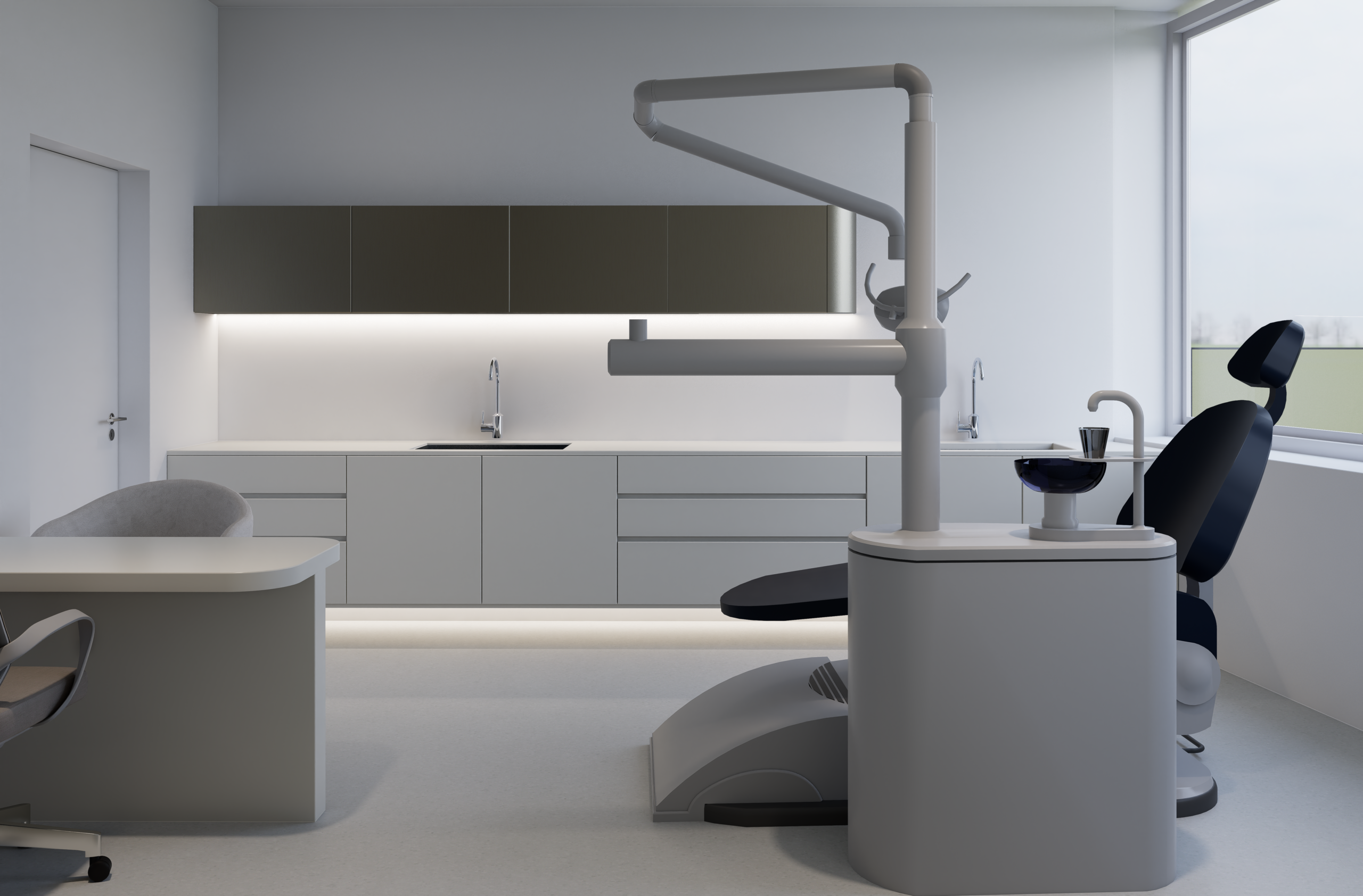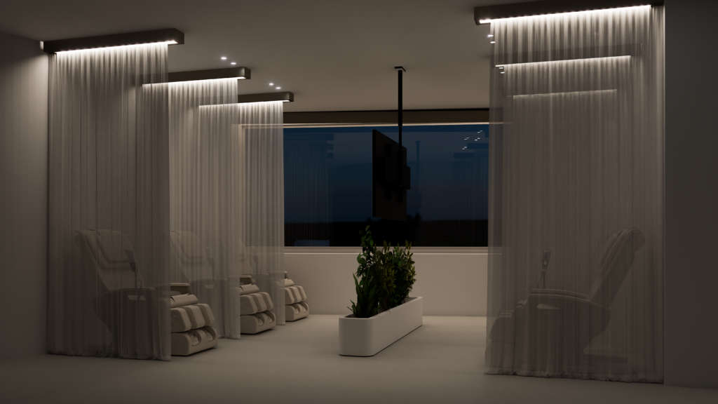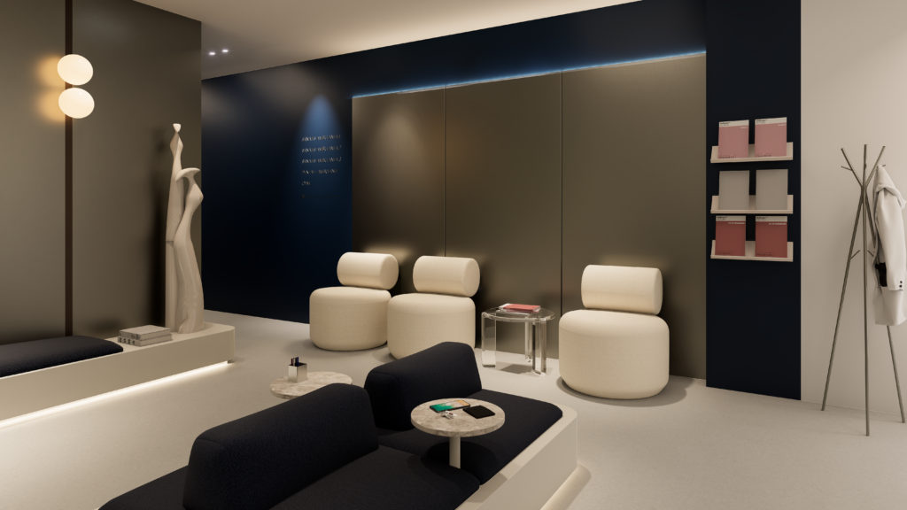 Projekt SAN je zasnovan kot sodoben fizioterapevtski prostor, kjer se strokovnost prepleta z občutkom miru in nadzora. Izhodišče je bilo ustvariti okolje, ki ne deluje klinično v klasičnem pomenu besede, temveč premišljeno in umirjeno — prostor, v katerem se uporabnik počuti dobro, hkrati pa jasno zazna profesionalnost storitve.